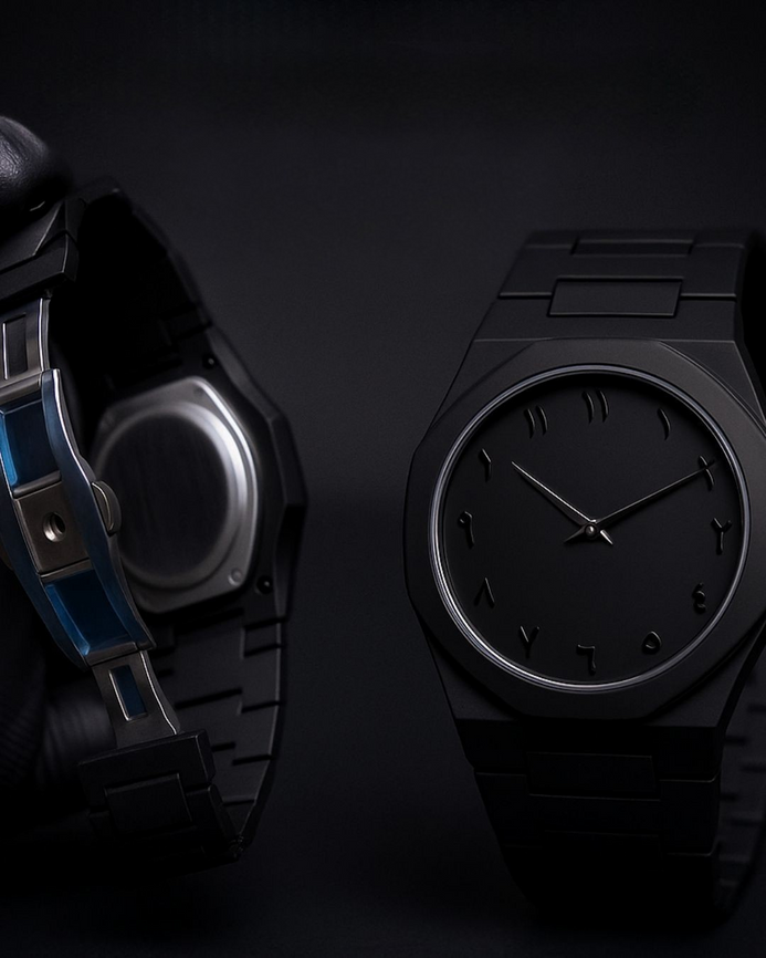 AURA Watch, a sleek black timepiece designed for those who value elegance and individuality. With its unique numeral design and matte finish, this watch speaks volumes β without saying a word.
